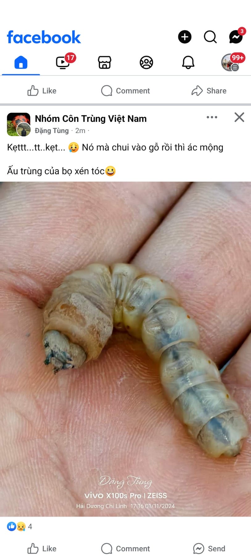 con này ăn phân nên chỗ mình gọi là sùng phân, hay sống ở đống phân oai hay gốc cây mục, có con to bằng ngón chân cái, có lông, màu ngả vàng, chỗ mình ngta mua 2k/1con để đặt tôm. Còn con ăn được tuy hình dáng giống nhưng là loại khác, nó ở nơi đất ẩm xốp, hay có ở nơi trồng mì (khoai mì), cỏ voi,...nên ngta gọi là sùng mì, thân trắng đục như đuông dừa, không có lông, chỉ to bằng ngón tay, sơ chế rồi bán giá từ 700-1tr6 1kg tùy thời điểm đấy