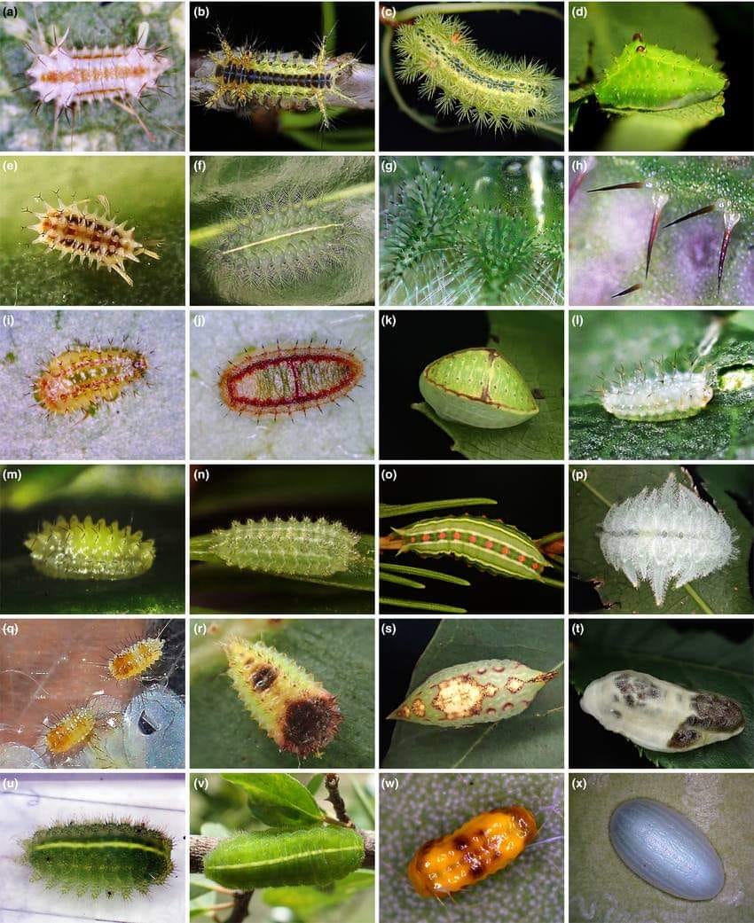 Như ảnh, nó tích lũy các vỏ lột xác của những lần trước đó lên phần "đuôi" rồi dùng đó như một loại vũ khí hù dọa bất kỳ kẻ nào tiến lại gần. Người ta ghi nhận loài này lột xác khoảng 6 lần trong một chu kỳ phát triển vòng đời, như vậy con ấu trùng trong ảnh đang ở kỳ cuối cùng của giai đoạn ấu trùng (vì đã có 5 cái vỏ cũ kia rồi). Thật là vi diệu quá đi.