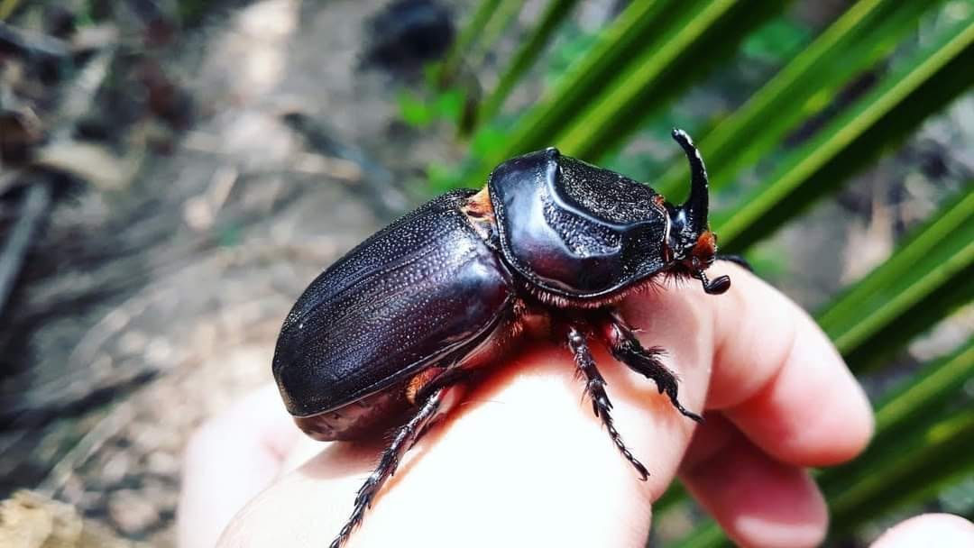 Đây là thủ phạm, con bọ cánh cứng 1 sừng (kiến vương 1 sừng) tên Oryctes rhinoceros, loài côn trùng có rất nhiều ở nước ta. Vườn tược nào cũng có, buổi tối chúng thường bay vào các khu đô thị, khu dân cư.
