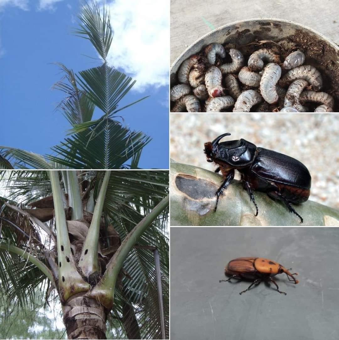 Sau vài ngày, trứng nở thành ấu trùng. Ấu trùng có hàm rất khoẻ, ăn mạnh và có thể ăn cả phần nhu mô lẫn phần sợi già của cây dừa. Khi mới nở ấu trùng đục vào phía trong thân cây hoặc vào bó lá ngọn. Khi tấn công vào bó lá ngọn thì chúng cắn phá củ hủ, làm cho củ hủ bị hư thối, dẫn đến hư đỉnh sinh trưởng, các lá ngọn héo vàng và đổ ngã xuống, cây chỉ còn những lá già xanh, rồi các lá già cũng từ từ rụng đi, cuối cùng cây sẽ bị chết.