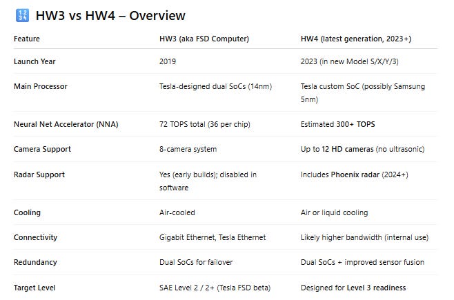 Would you like a visual comparison or a technical spec sheet between HW3 and HW4, or how they map to ASIL levels?