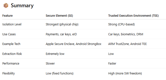 📌 Used by: Apple Wallet, Samsung Knox Vault, Android StrongBox (Pixel phones)